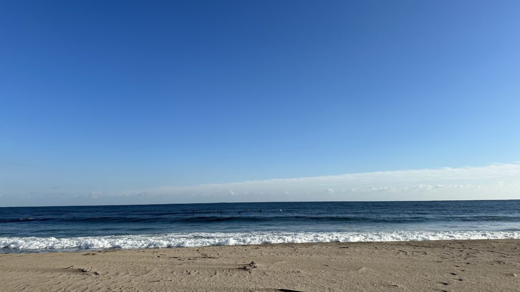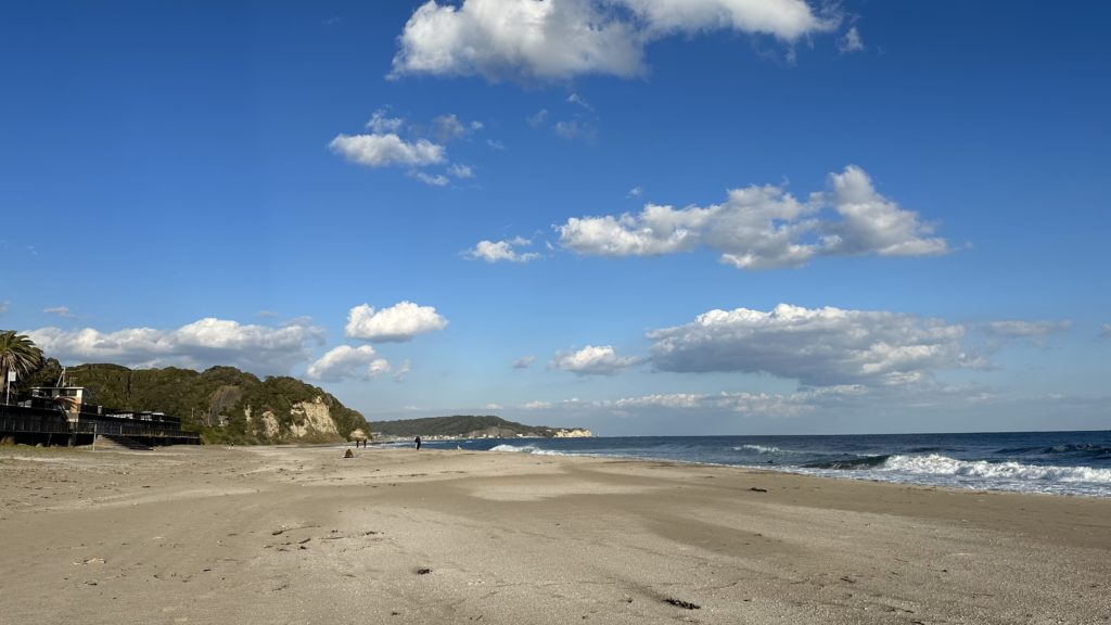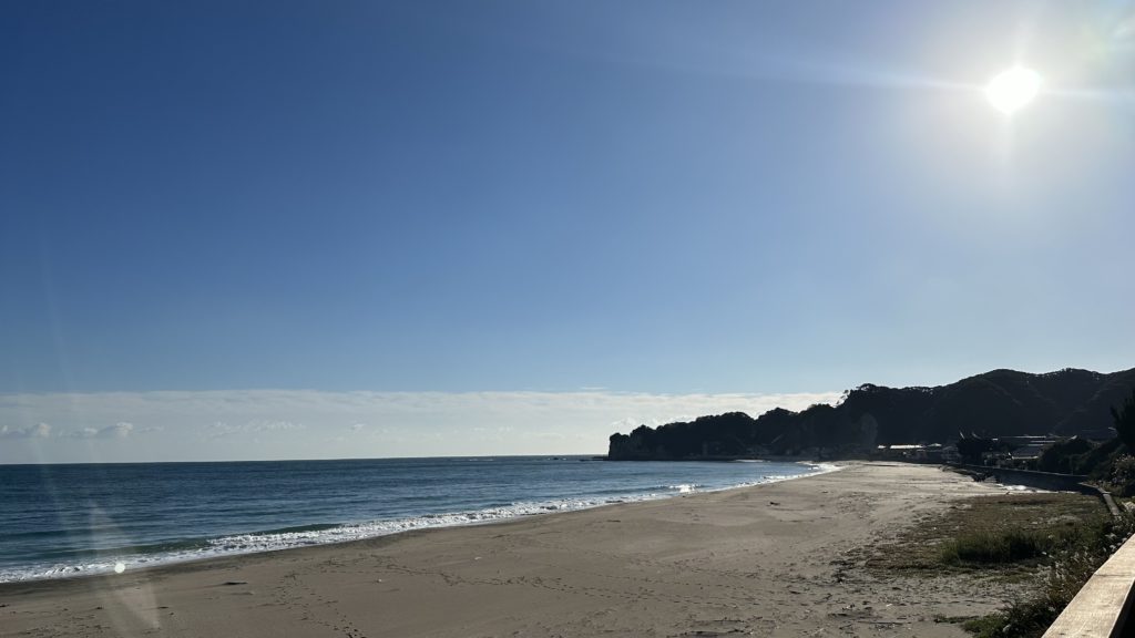 2023年11月30日 仕事で来たよ。サーフィンは、2019年に始めようかと思って、湘南、マウイ島ラハイナ、オアフ島ノースショアでそれぞれスクールで体験をした。それ以来、くすぶる思いがあった。千葉の海は怖いなという気持ちもあった。65歳で出来るかなとか(今は66歳)。でも、好きなことをして生きて死ぬしかないではないか。ここの海岸で貝を拾ったり。釣り人もいる。サーファーばかりではない。この海岸を好きになった。