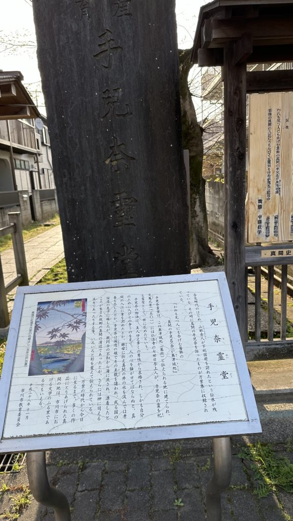 奈良時代以前に市川真間に住んでいたとされる女性、手児奈さんを祀った霊堂で、今は「安産の神」としてお参りされてます。悠久のロマンに参拝しました。また、手児奈が水汲みをしたという「真間の井」は道を隔てた向かいの「亀井院」(瓶井院)の庭に残っています。