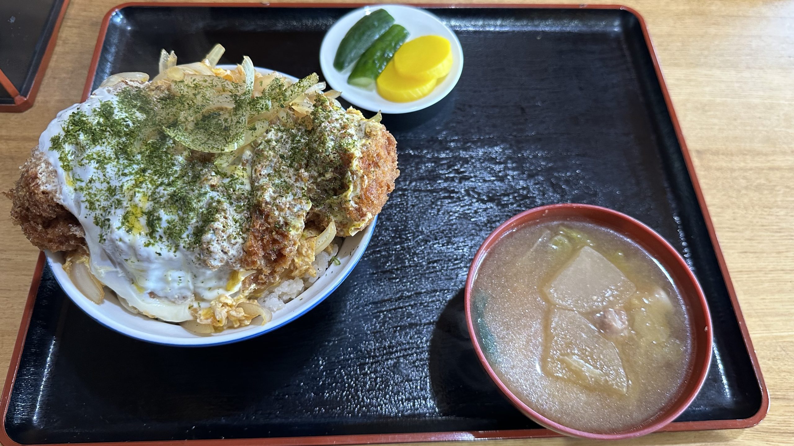一言で言えば破壊力抜群会社の同僚と千葉方面に行った際、いい店があると言う事で四街道ICを通過して現地へ。11時半なのにもう順番を待つ漢達の姿が。天丼とカツ丼で迷うがここは漢らしくカツ丼をチョイス。現れたカツ丼は「これ食べ切れるか⁈」と泣きそうになる程。3〜4cmはある分厚いカツがズラリと並んでいる。しかも豚汁。前に食べた桝形と違って荒々しい豚汁がまた存在感を出している。味は良い。旨いなこれ。しかもこれだけの破壊力なのに後にダメージを残さないとは…。しかも1,200円かよこれで!!千葉茨城の漢達が続々と集結するのが納得出来た。また来たい。